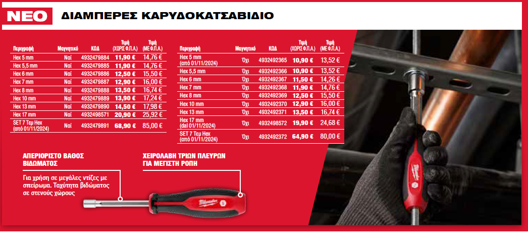 Κεφαλή 6 σημείων για καλύτερη εφαρμογή σε συνήθεις βίδες στερέωσης.