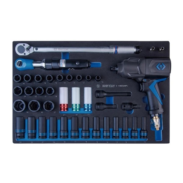 Το King Tony 9-44805AMPV 41-Piece Impact Socket Set with 33481-095 EVA Foam είναι ένα σετ υψηλής ποιότητας υποδοχών κρούσης που είναι ιδανικό για μια ποικιλία εφαρμογών αυτοκινήτων και βιομηχανίας. Το σετ περιλαμβάνει μια ευρεία γκάμα μεγεθών υποδοχών, από 10mm έως 27mm, καθώς και μια ποικιλία άλλων αξεσουάρ, όπως προεκτάσεις, προσαρμογείς κτλ . Οι υποδοχές είναι κατασκευασμένες από ανθεκτικό χρωμιοβαναδικό χάλυβα και είναι επικαλυμμένες με μαύρο οξείδιο για πρόσθετη ανθεκτικότητα και αντοχή στη διάβρωση. Το σετ διατίθεται επίσης με μια βολική θήκη μεταφοράς από αφρό EVA που καθιστά εύκολη τη μεταφορά και την οργάνωση των υποδοχών.