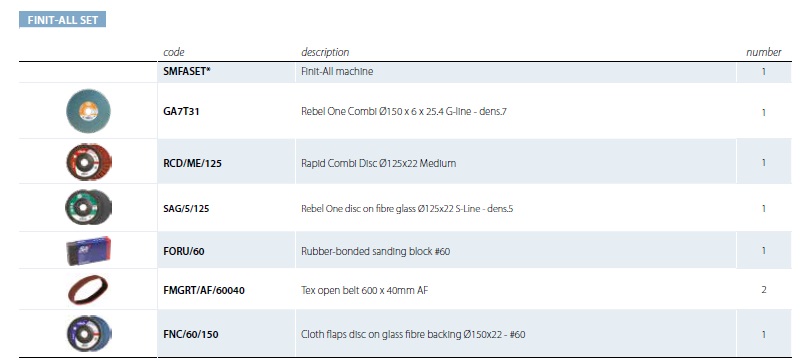 ανοξείδωτο χάλυβα . Με την επίπεδη κίνηση του και προστατευτικό κάλυμμα 150 mm, αυτό το μηχάνημα είναι κατασκευασμένο για το Combi μας πεπιεσμένος δίσκος φινιρίσματος. Ωστόσο, το Fit-All είναι κάτι περισσότερο από ένα καθαρό μηχάνημα φινιρίσματος, είναι ένα πραγματικό πολυχρηστικό. Με εύρος ταχύτητας των 2000 – 7600 RPM, το Finit-All μπορεί να χρησιμοποιηθεί τόσο για φινίρισμα όσο και για (ελαφριά) εργασία λείανσης. Για το τελευταίο, μπορείτε να βασιστείτε στο Ø150-mm ή Ø125-mm flap disk.