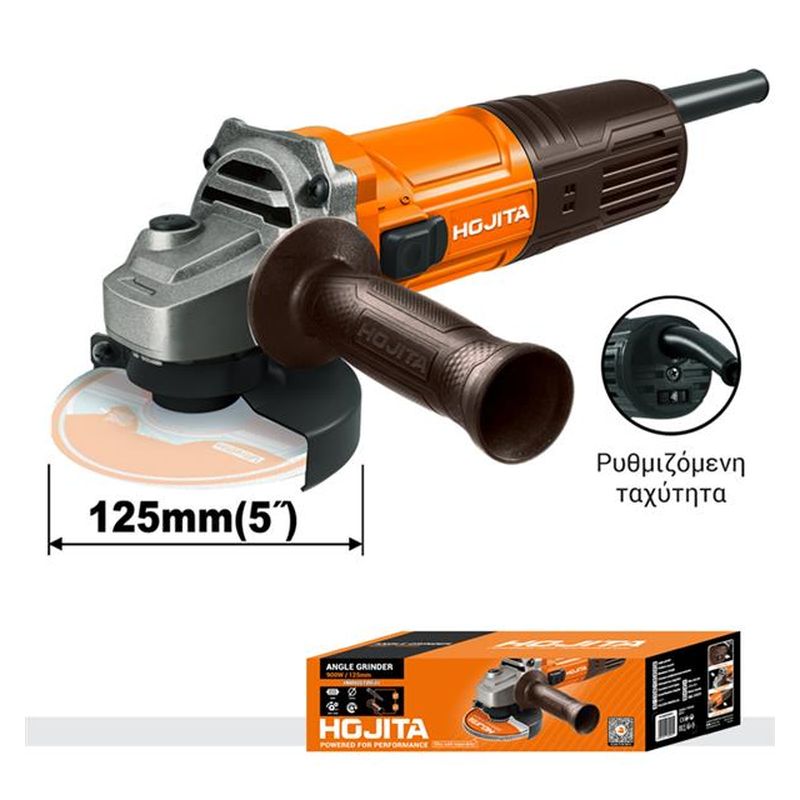 Ο γωνιακός τροχός 125mm με ισχύ 900W είναι ένα εργαλείο υψηλής απόδοσης, ιδανικό για κοπή και λείανση σε διάφορα υλικά. Με ρυθμιζόμενη ταχύτητα χωρίς φορτίο από 5000 έως 12000 rpm, προσφέρει ευελιξία ανάλογα με τις ανάγκες της εργασίας σας. Η διάμετρος δίσκου 125mm και το σπείρωμα άξονα M14 εξασφαλίζουν συμβατότητα με μια ευρεία γκάμα δίσκων.
