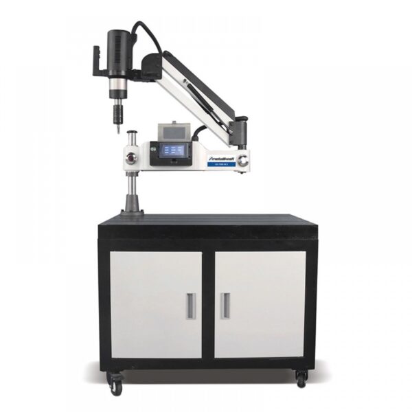 Προγραμματιζόμενη λειτουργία ψύξης με αέρα και λίπανσης (απαιτείται εξωτερική πηγή πεπιεσμένου αέρα με πίεση λειτουργίας 6-8 bar και). Η κεφαλή του δραπάνου μπορεί να περιστραφεί από 0 έως 90 μοίρες. Τσοκ ταχείας αλλαγής με ολισθητικό συμπλέκτη για ασφαλή κοπή σπείρωματος χωρίς κίνδυνο θραύσης. Περιστροφή δεξιά/αριστερά στο σώμα του δραπάνου. Ρύθμιση μεγέθους, ταχύτητας, βήματος και βάθους κοπής μέσω οθόνης αφής στον περιστρεφόμενο βραχίονα. Χειροκίνητη λειτουργία: Αφού φτάσετε στο καθορισμένο βάθος κοπής, ο άξονας σταματά αυτόματα, προς τα εμπρός και για να στραφεί αριστερόστροφα πρέπει να ενεργοποιηθεί χειροκίνητα. Αυτόματη λειτουργία: Μόλις επιτευχθεί το καθορισμένο βάθος κοπής, το μηχάνημα αλλάζει αυτόματα από δεξιόστροφα σε αριστερόστροφα. Ιδανικό για το άνοιγμα σπειρωμάτων σε πολλές τυφλές οπές.