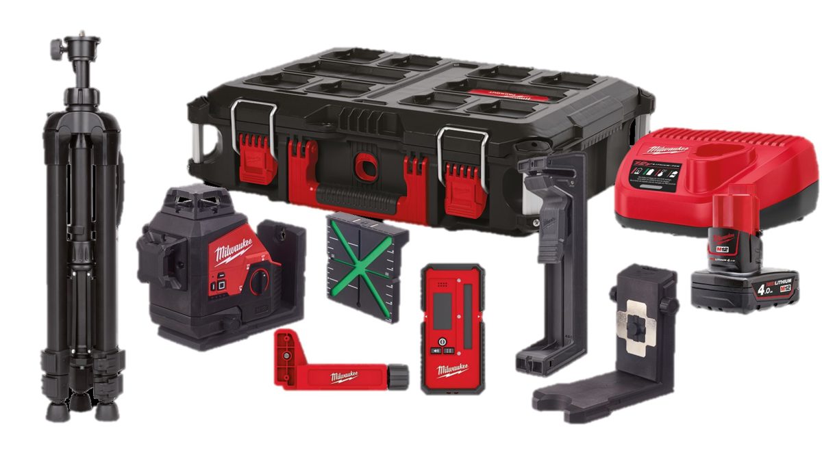 M12™ 3PLKIT-401P 360° ΠΡΑΣΙΝΟ LASER 3ΩΝ ΕΠΙΠΕΔΩΝ ΣΕ ΚΙΤ ΜΕ ΕΞΑΡΤΗΜΑΤΑ MILWAUKEE 4933478960