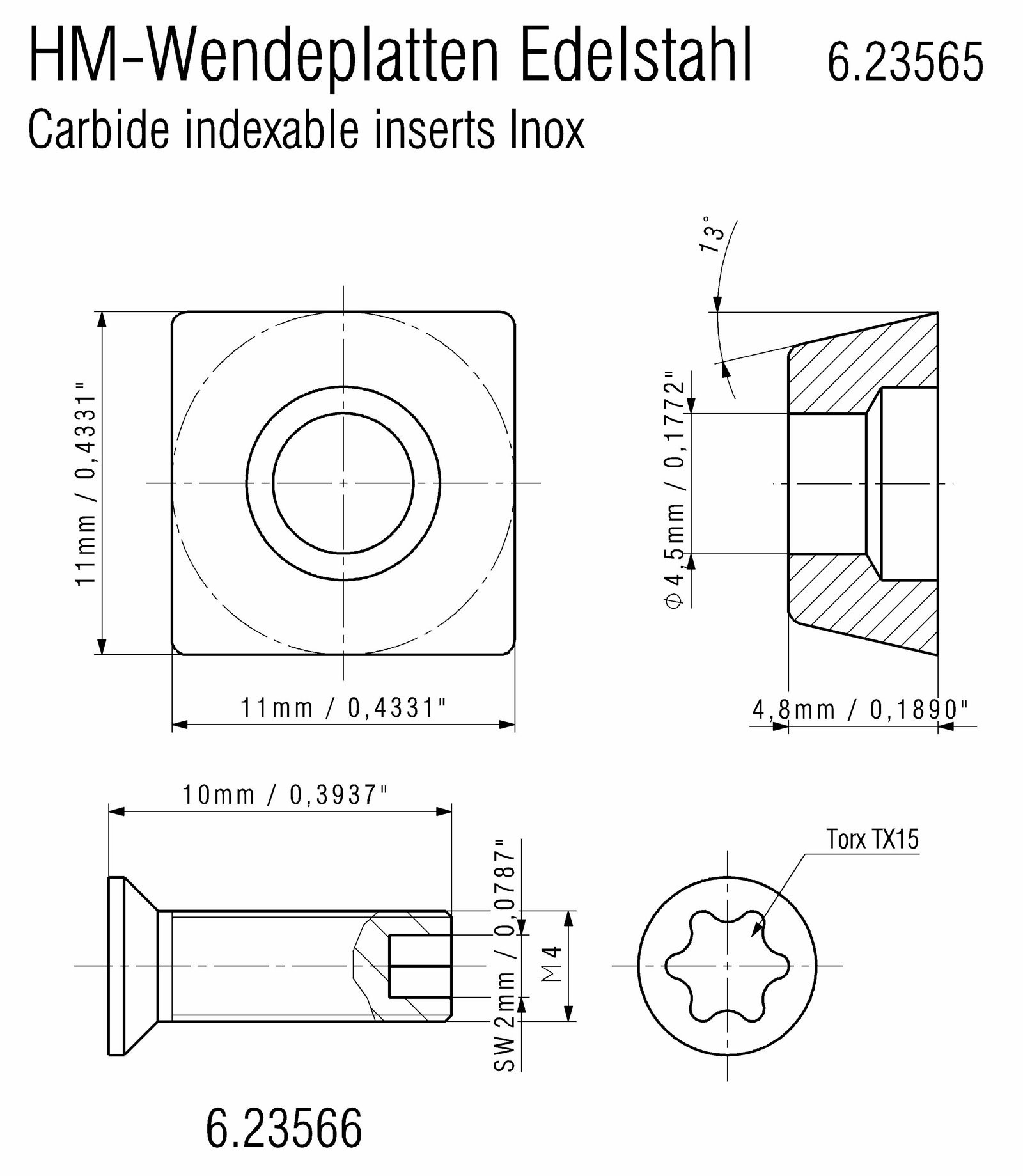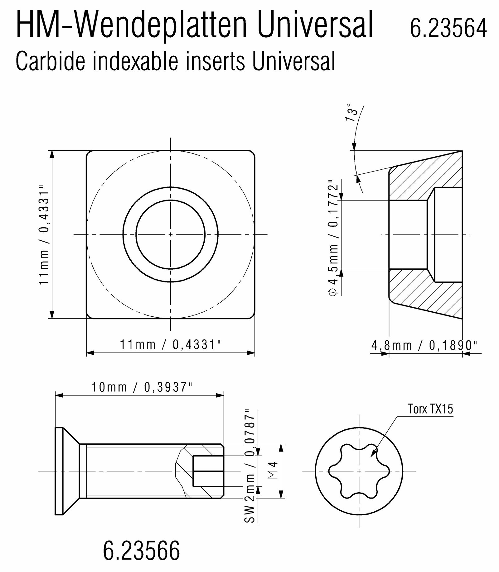 Κεφαλή φρεζαρίσματος με τρία ένθετα με δυνατότητα καρβιδίου για όλες τις γωνίες κλίσης από 0-90°
