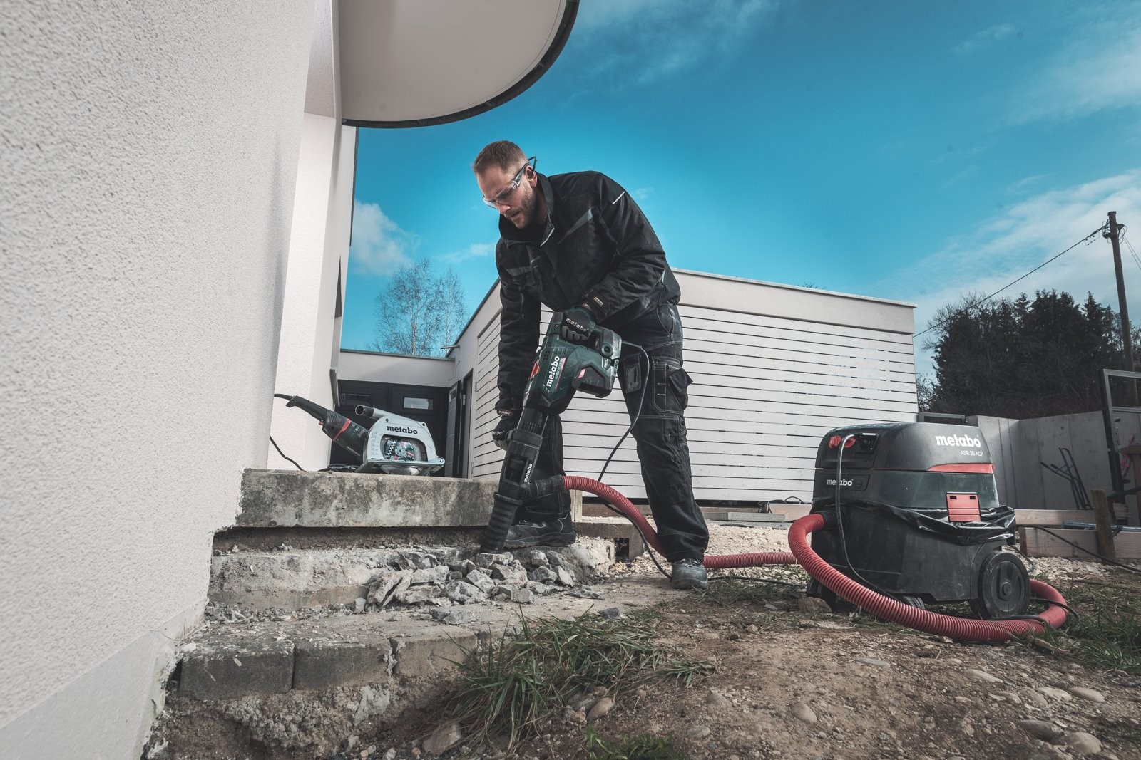 - Σύστημα Metabo VibraTech (MVT) διπλής απόσβεσης: Εργασία με μειωμένους κραδασμούς που δεν καταπονεί τις αρθρώσεις χάρη στο ενσωματωμένο σύστημα απόσβεσης στις χειρολαβές και εσωτερικό αντικραδασμικό σύστημα για άνετη εργασία σε συνεχή χρήση