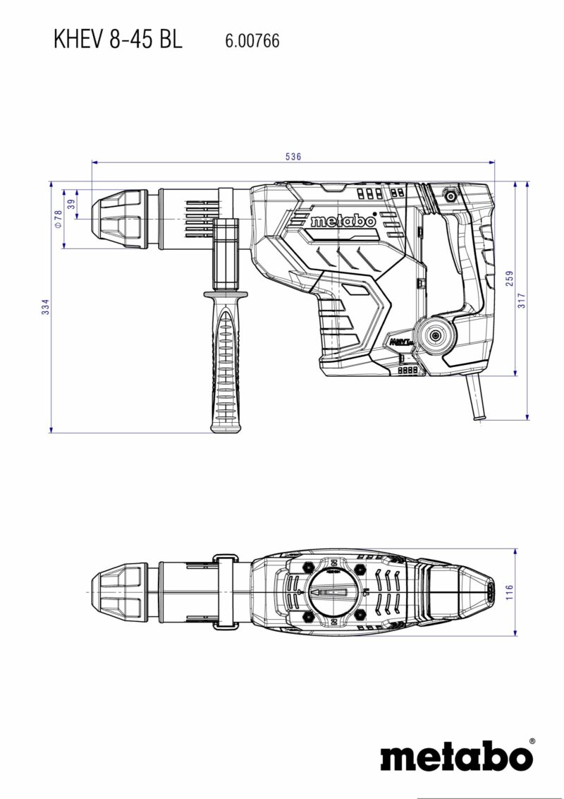 - Σύστημα Metabo VibraTech (MVT) διπλής απόσβεσης: Εργασία με μειωμένους κραδασμούς που δεν καταπονεί τις αρθρώσεις χάρη στο ενσωματωμένο σύστημα απόσβεσης στις χειρολαβές και εσωτερικό αντικραδασμικό σύστημα για άνετη εργασία σε συνεχή χρήση