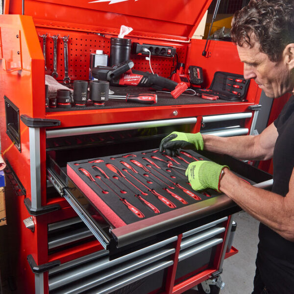 Η Milwaukee PACKOUT™ XL αποτελεί μέρος του αρθρωτού συστήματος PACKOUT™, προσφέροντας άφθονο χώρο αποθήκευσης και μέγιστη ανθεκτικότητα για επαγγελματική χρήση στο εργοτάξιο ή στο εργαστήριο.