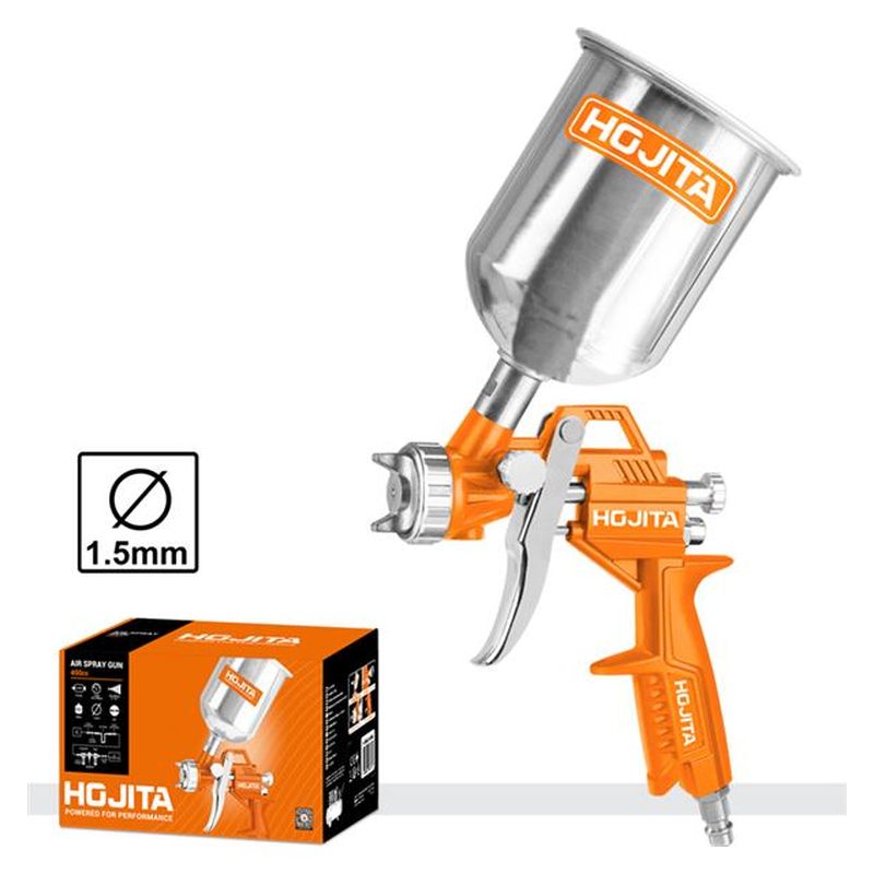 Το πιστόλι βαφής αέρος με άνω δοχείο 400cc είναι ιδανικό για εφαρμογές βασικής στρώσης χρώματος, προσφέροντας ακριβή και ομοιόμορφο ψεκασμό. Διαθέτει μπεκ 1.5mm, με πλάτος ψεκασμού 180-250mm, εξασφαλίζοντας αποτελεσματική κάλυψη της επιφάνειας. Το δοχείο χωρητικότητας 400cc προσφέρει επαρκή ποσότητα χρώματος για συνεχόμενη εργασία, ενώ η λειτουργική πίεση κυμαίνεται από 3 έως 4 bar. Το εργαλείο είναι συμβατό με συνδέσμους τύπου Ευρώπης, ΗΠΑ, Nitto και Ιταλίας, και έχει προαιρετικό ακροφύσιο από 1.2mm έως 1.8mm. Με κατανάλωση αέρα 119-200l/min και βάρος μόλις 0.48Kg, είναι ελαφρύ και εύχρηστο για επαγγελματίες και ερασιτέχνες.