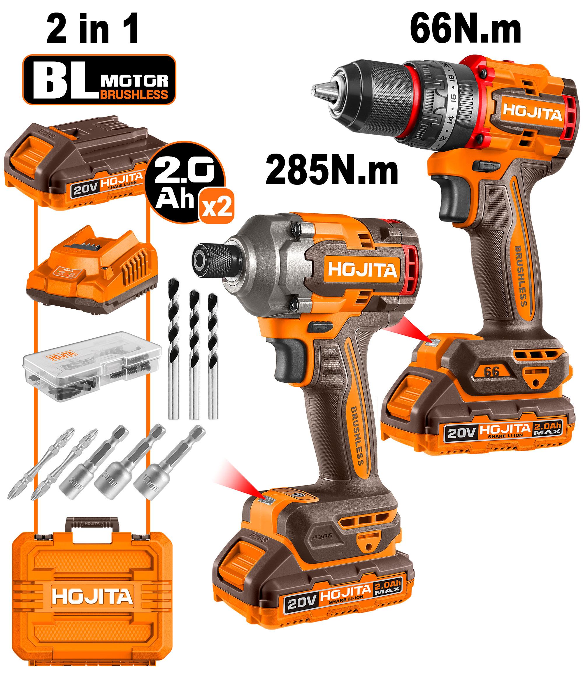 Το σετ περιλαμβάνει ένα κρουστικό δραπανοκατσάβιδο 66Nm και ένα παλμικό κατσαβίδι 285Nm, εξοπλισμένα με brushless κινητήρες για μεγαλύτερη διάρκεια ζωής και βέλτιστη απόδοση.