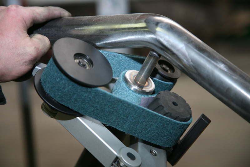 - Οι φλάντζες στους οδηγούς τροχούς εξασφαλίζουν εξαιρετικά ευέλικτη και σταθερή ευθυγράμμιση των ζωνών. Αυτό καθιστά σχεδόν αδύνατο να τρέξει ο ιμάντας λείανσης από το μηχάνημα.